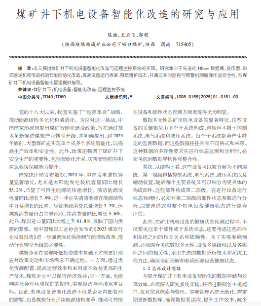 本文探讨煤矿井下机电设备智能化改造与远程监控系统的实现。