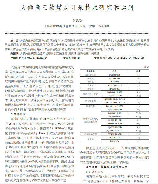 大倾角三软煤层具有地质构造复杂、岩层稳固性差等特点,在矿井作业面开采中,若未采取正确的技术,极易导 致煤层坍塌、岩层移动等问题。