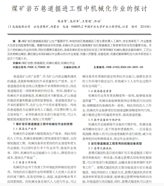 煤矿岩石巷道掘进工程中机械化作业的探讨