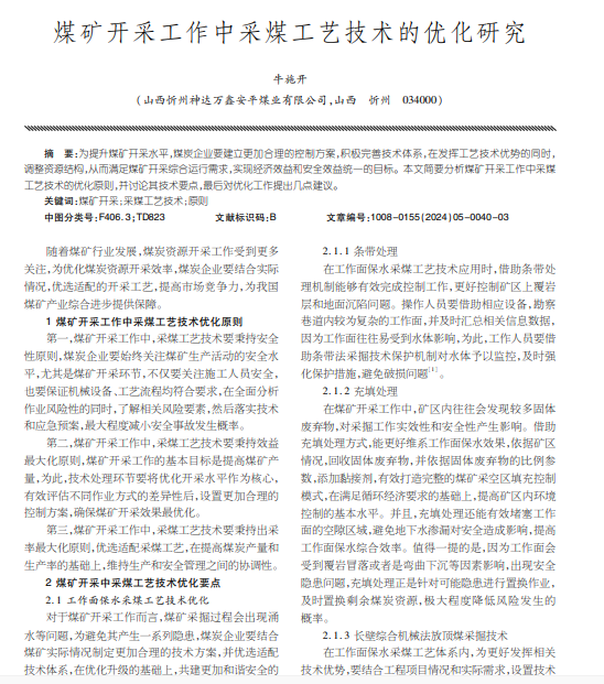 煤矿开采工作中采煤工艺技术的优化研究