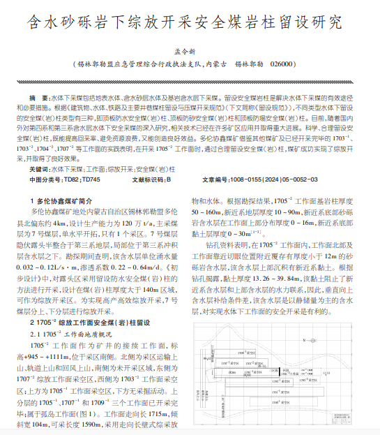 含水砂砾岩下综放开采安全煤岩柱留设研究
