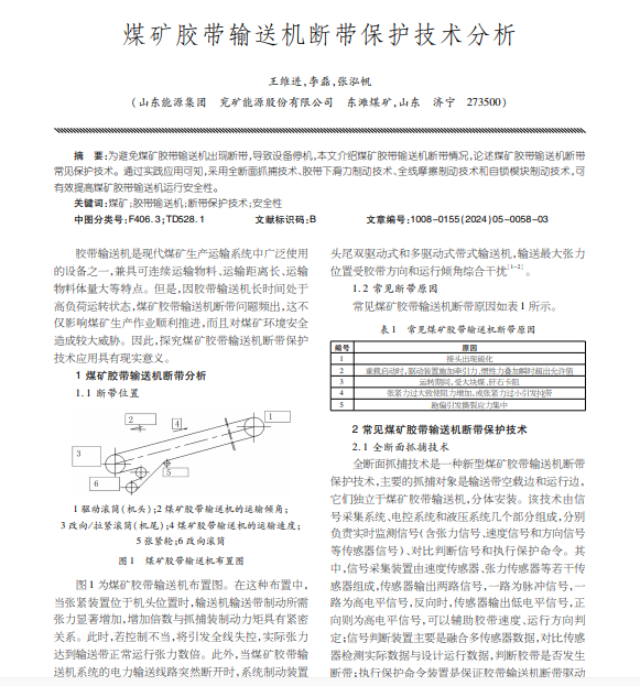 为避免煤矿胶带输送机出现断带,导致设备停机,本文介绍煤矿胶带输送机断带情况,论述煤矿胶带输送机断带 常见保护技术。