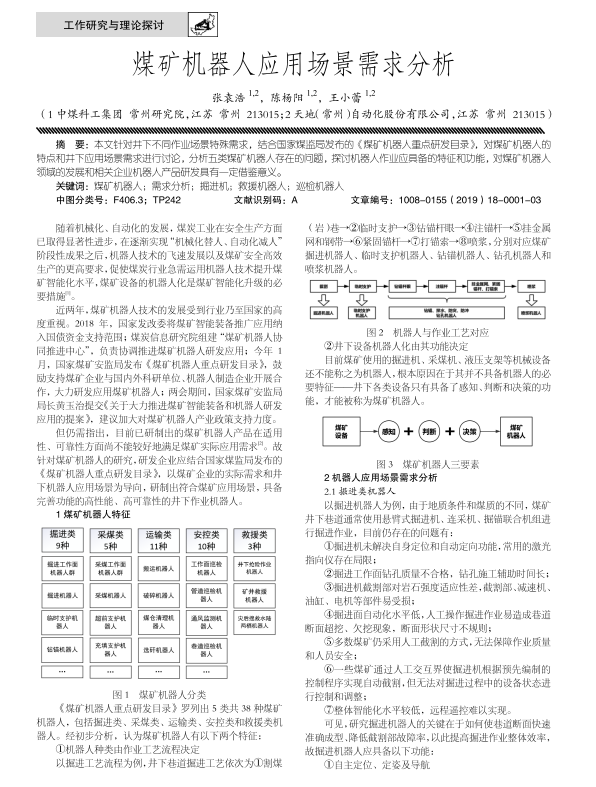 本文针对井下不同作业场景特殊需求,结合国家煤监局发布的《煤矿机吞入重点研发自录》,对煤矿机吞人的 特点和井下应用场景需求进行讨论,分析五类煤矿机吞入存在的问题,探讨机吞入作业应具备的特征和功能,对煤矿机吞入领域的发展和相关企业机吞人产另研发具有—定借鉴意义。
