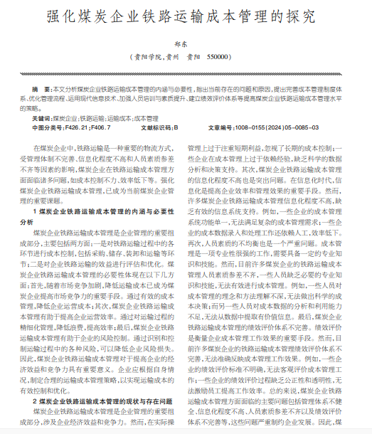 强化煤炭企业铁路运输成本管理的探究