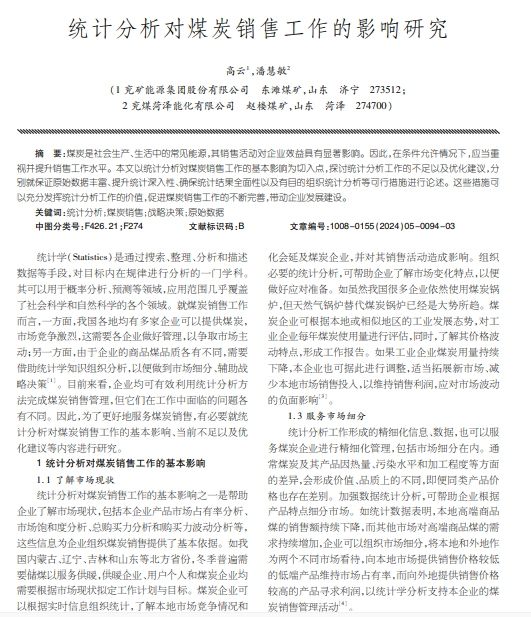 统计分析对煤炭销售工作的影响研究