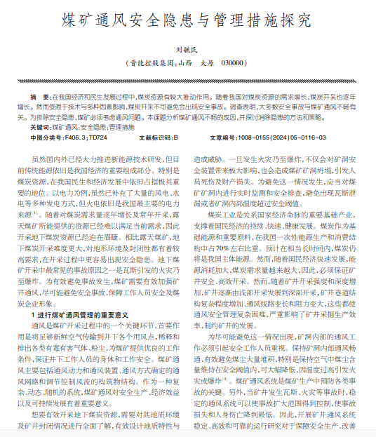 煤矿通风安全隐患与管理措施探究