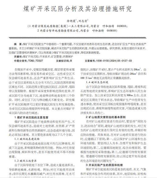煤矿开采沉陷是生产中面临的一个重要问题,不仅会破坏地表形态和生态环境,还会对矿区生产和生活造成严 重影响。
