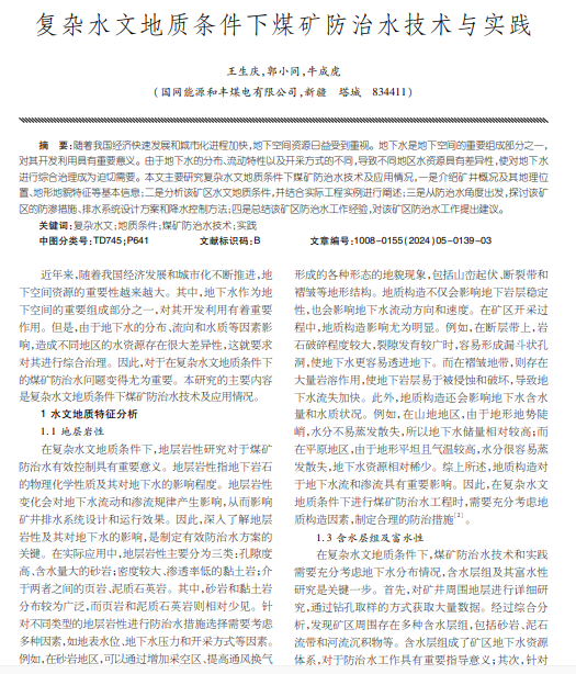 复杂水文地质条件下煤矿防治水技术与实践