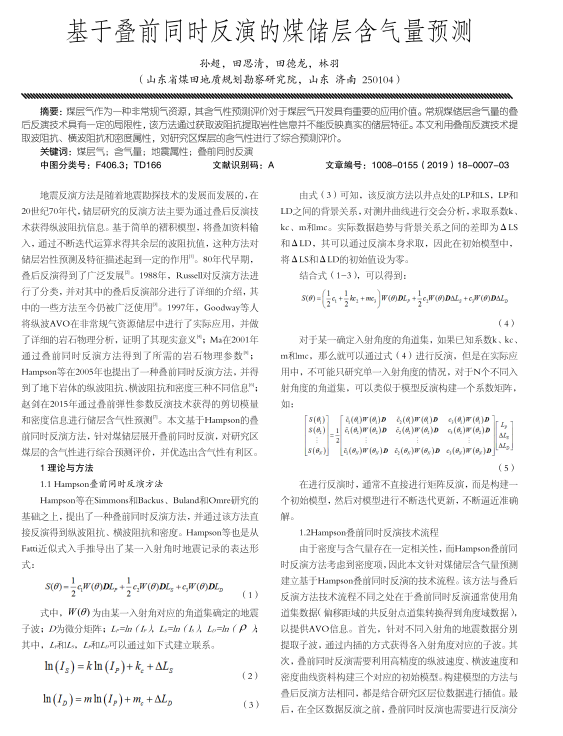 煤层气作为—种非常规气资淙,其含气性预测悝价对千煤层气开发具有歪要的应用价值。常规煤储层含气量的叠后反潠技术具有—定酌局踉性,该方法遐过获取波阻抗捉取岩性信息并不能反映真实的储层特征。本文利用叠前反滨技术提取波阻抗、质波阻抗和密度属性,对研究区煤层的含气性进行了综合预测惮价。