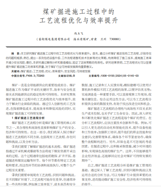 本文研究煤矿掘进施工过程中的工艺流程优化与效率提升。