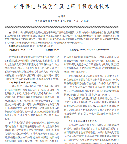 矿井供电系统的稳定性和安全性对于保障生产持续性至关重要。