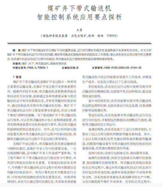 煤矿井下带式输送机 智能控制系统应用要点探析