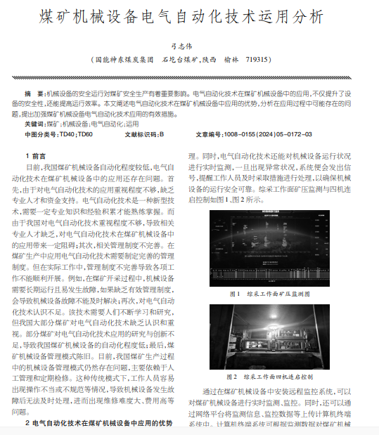 机械设备的安全运行对煤矿安全生产有着重要影响。电气自动化技术在煤矿机械设备中的应用,不仅提升了设 备的安全性,还能提高运行效率。