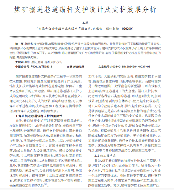 煤矿掘进巷道锚杆支护设计及支护效果分析
