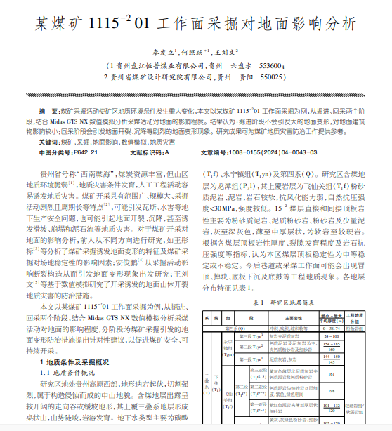 结果认为,掘进阶段不会引发大的地面变形。对地面建筑 物影响较小,回采阶段会引发地面开裂,沉降等剧烈的地面变形现象。