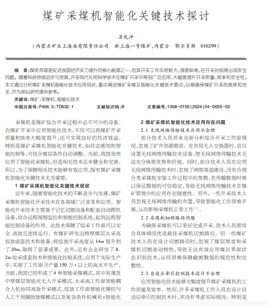 煤矿;采煤机;智能化技术