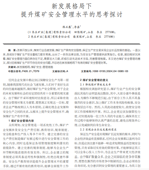 新发展格局下 提升煤矿安全管理水平的思考探讨