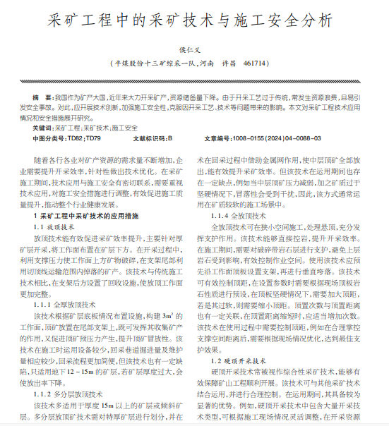 我国作为矿产大国,近年来大力开采矿产"资源储备量下降。由于开采工艺过于传统,常发生资源浪费,且易引 发安全事故。