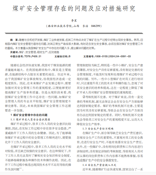 随着社会和经济发展,煤矿工业快速发展,但其工作特点决定了煤矿在生产过程中经常出现安全事故。