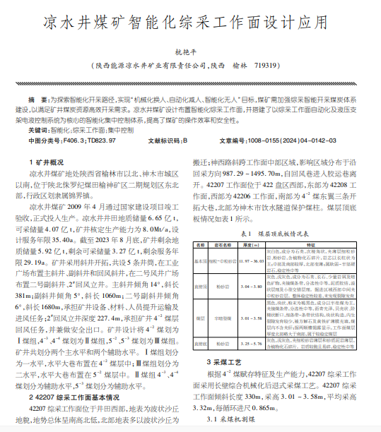 凉水井煤矿设计布置智能化综采工作面,并搭建了以综采工作面自动化及液压支 架电液控制系统为核心的智能化集中控制体系,提高了煤矿的操作效率和安全性。