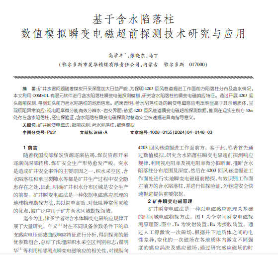 基于含水陷落柱 数值模拟瞬变电磁超前探测技术研究与应用