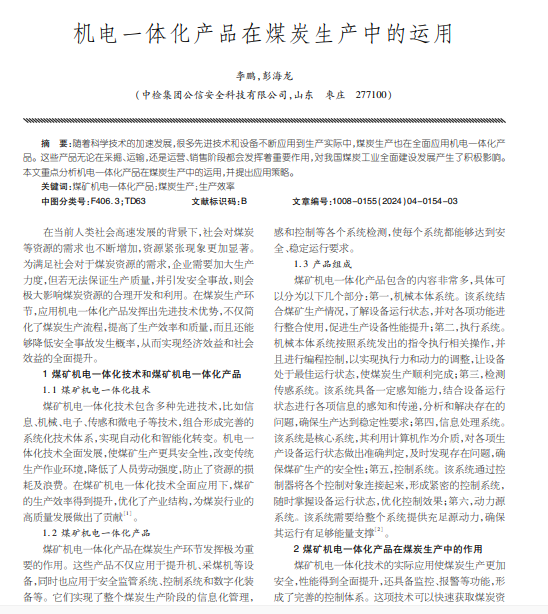 机电一体化产品在煤炭生产中的运用