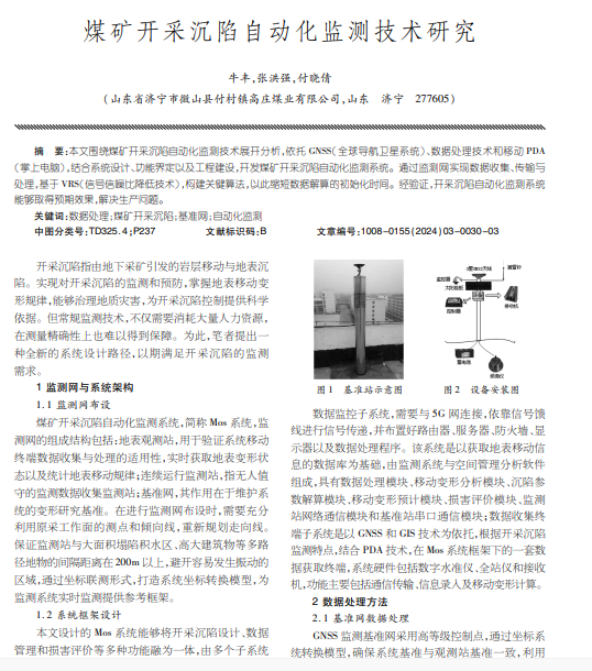 本文围绕煤矿开采沉陷自动化监测技术展开分析,依托GNSS(全球导航卫星系统)、数据处理技术和移动PDA (掌上电脑),结合系统设计、功能界定以及工程建设,开发煤矿开采沉陷自动化监测系统。