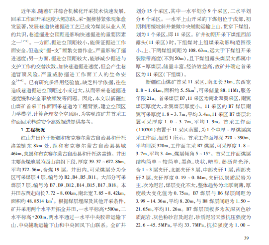 新疆红山煤矿 首采工作面回采巷道掘进空顶距理论研究