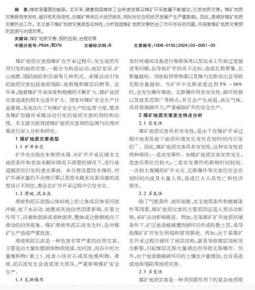 煤炭是重要的能源。近年来,随着我国煤炭工业快速发展及煤矿开采数量不断增加,引发地质灾害。