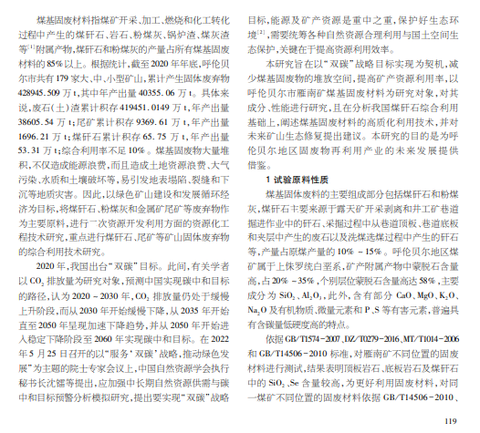 呼伦贝尔地区具有丰富的煤炭资源,煤矿在开采过程中产生了大量煤基固废材料,不仅造成资源浪费,还对矿区 土地资源和生态环境等造成不良影响。因地域和技术等问题,该地区固废物的综合利用率不足10% ,未能达到国家生态环境 保护标准。本研究在对雁南矿的煤基固废物进行成分分析的基础上,探讨利用煤基固废物进行有价元素回收、生产建材和矿 区生态修复等资源化利用技术。