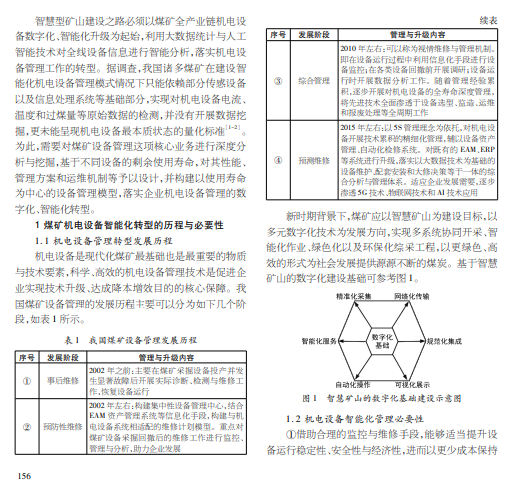 得益于多元传感器、无线通信技术和物联网技术等数字化技术在煤矿中的广泛应用,更直观的机电设备数据信 息为运维人员提供了明确的工作方向,煤矿设备管理趋于现代化、智能化。本次研究以数字化技术中的寿命衰退理论为主基 调,在分析煤矿机电设备智能化转型必要性后,对煤矿机电设备的剩余寿命开展智能化预测,为后期煤矿机电设备智能化管 理提供决策方向。
