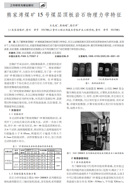 熊家湾煤矿15号煤层顶板岩石物理力学特征