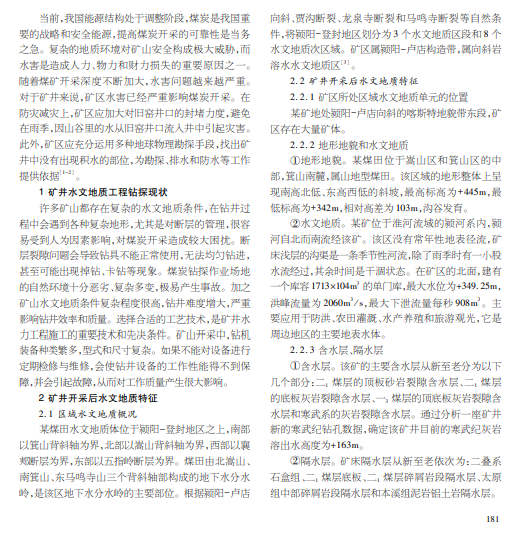 煤矿开采受水文地质条件影响很大,随着开采深度不断加大,矿井水文状况发生变化,水害种类日趋复杂,对煤 矿开采造成很大威胁。本文着重分析矿山开采后的水文地质特点,主要包括地形、水文、含水层、地下水补给、径流和入流变 化,并对矿山风险防控措施、矿山开采后水害风险防控技术管理进行讨论。