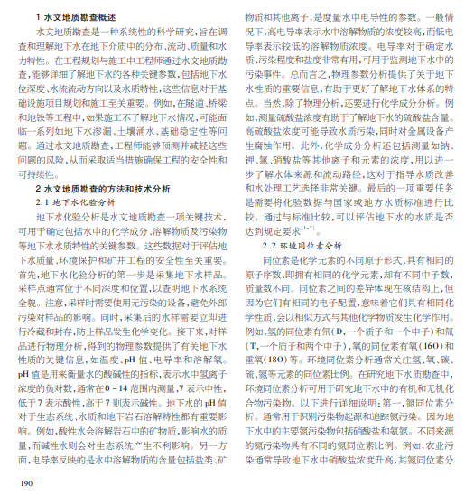 水文地质勘查是煤矿工程重要组成部分。本文探讨水文地质勘查方法和技术以及水文地质勘查在煤矿地质工 程勘查中的重要性。