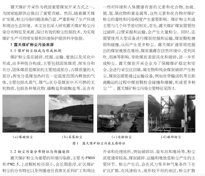 本文旨在研究露天煤矿粉尘污染分布特征及控制技术,以期提供科学依据和解决方案,改善煤矿工作环境和周 边环境。