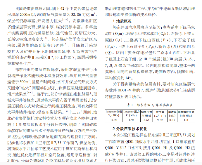 针对安徽淮北矿区井下瓦斯治理难度大,将地面抽采先进技术应用于煤矿瓦斯治理,并进行软煤顶板水平井分 段压裂技术优化与研究。