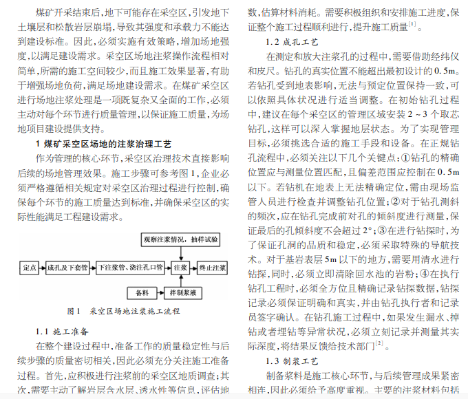 煤矿采空区场地;注浆治理;施工工艺