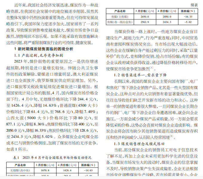 新时期;煤炭销售;困境