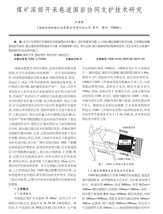 煤矿深部开采巷道围岩协同支护技术研究