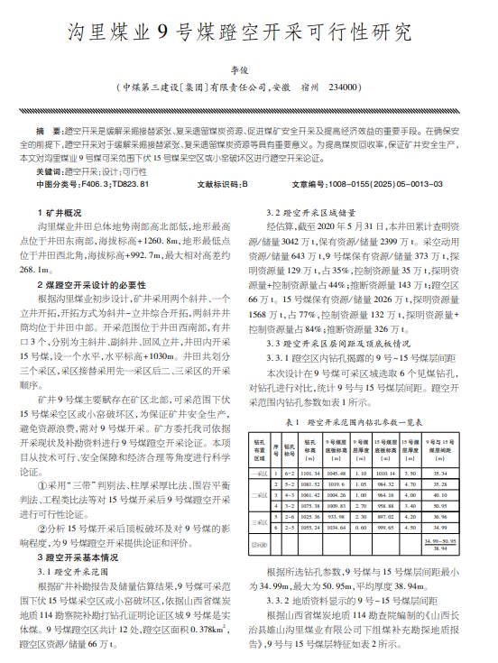 沟里煤业9号煤蹬空开采可行性研究