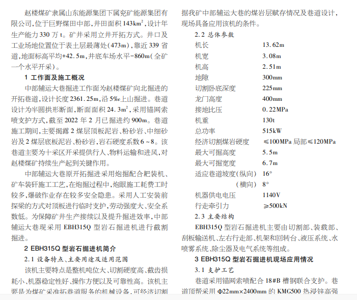 EBH315Q型岩石掘进机 在赵楼煤矿的革新与应用