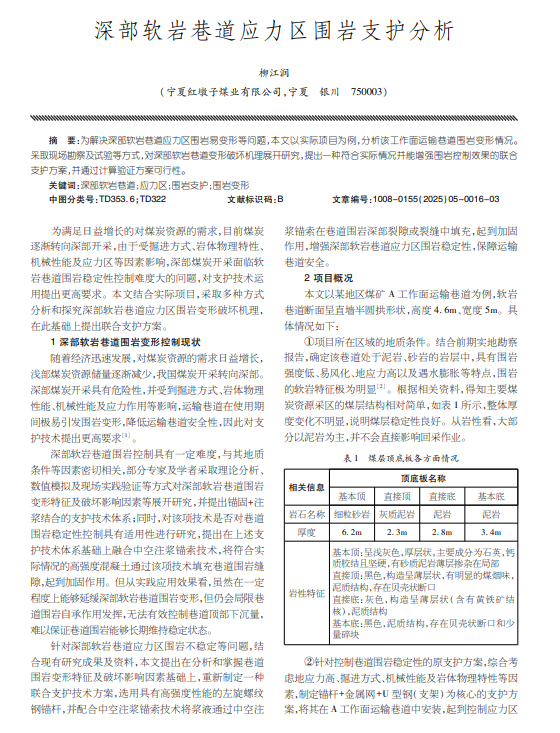 深部软岩巷道应力区围岩支护分析