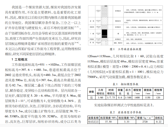 物理模拟;综采面;覆岩运移