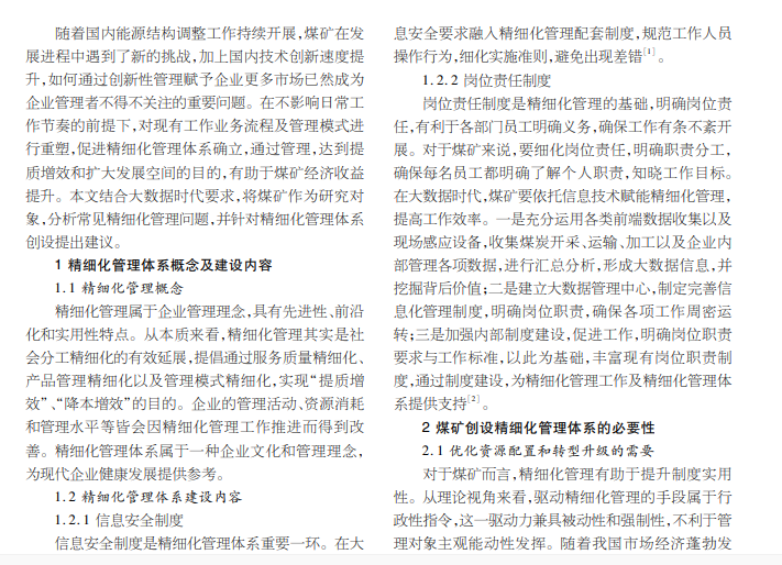 大数据时代煤矿精细化管理体系构建策略研究