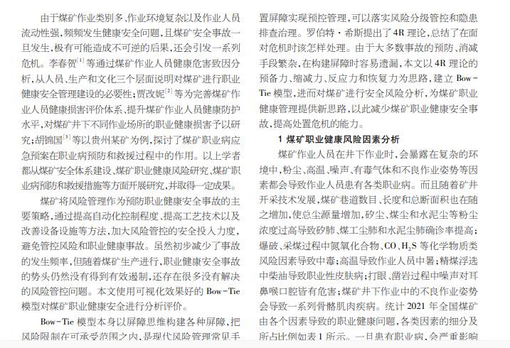 基于4R和屏障理论的 煤矿职业健康安全Bow-Tie模型构建