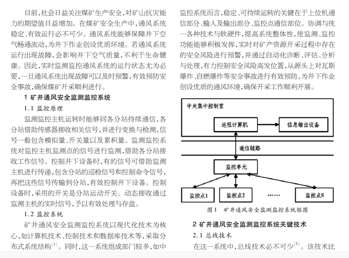 矿井通风安全监测监控系统关键技术应用