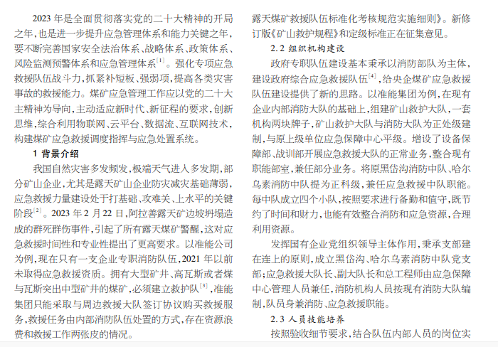 煤矿应急管理是国家治理体系重要组成部分,承担了化解重大安全风险,及时应对处置各类灾害事故的重要职 责。