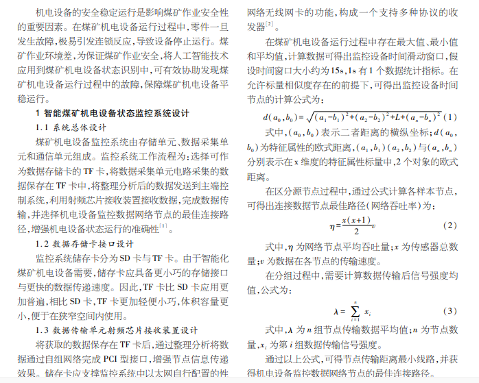 人工智能技术支持下 煤矿机电设备状态的智能识别