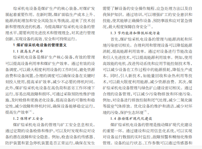 新时期,煤矿综采机电设备管理需要创新以应对各种挑战,提高生产效率和安全性,促进可持续发展。