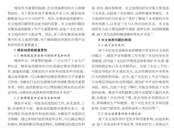煤炭地质勘察中水文地质问题的分析研究